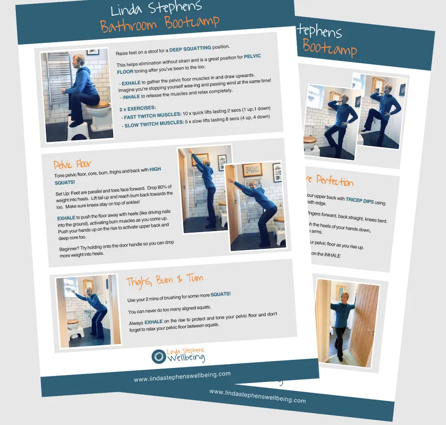 Keep it by the loo to remind you to do 1-2 exercises every time you go (habit-stack!)
